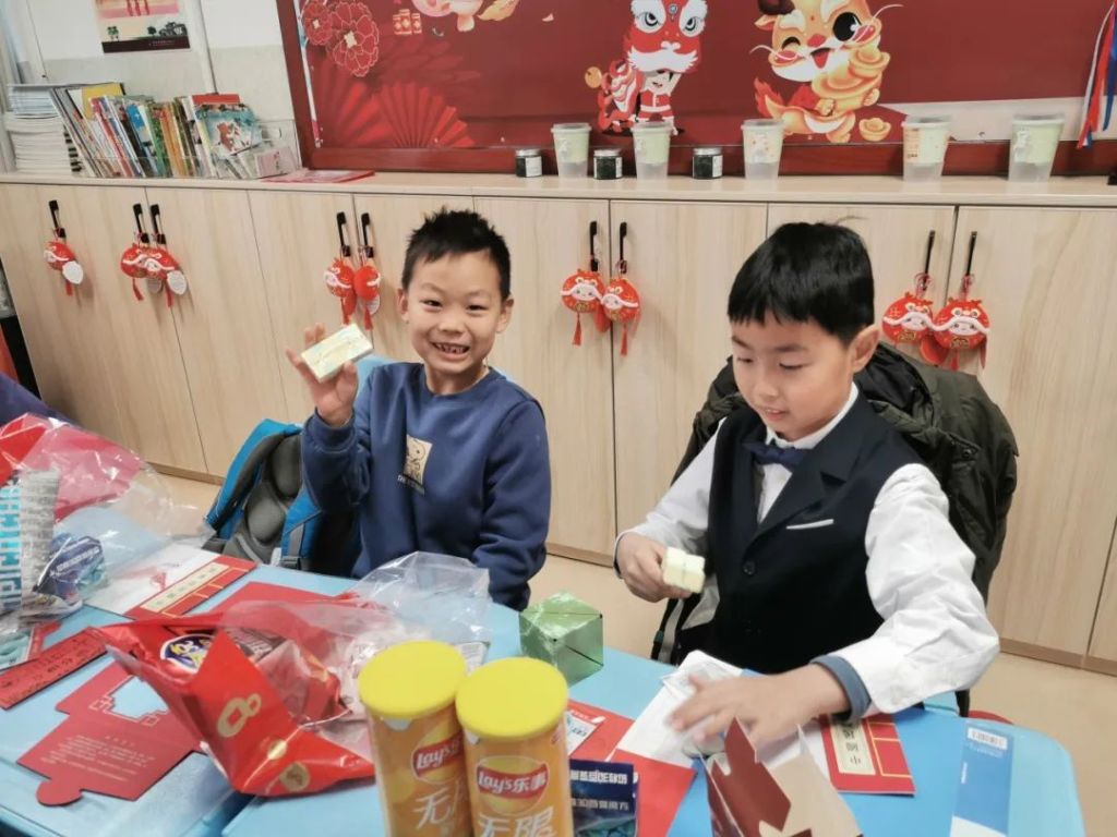 老師家長們將對孩子的期望、對班級的熱愛、對新年的美好愿景、對未來的無限憧憬,融進了蛋糕和新年禮物中。有趣的盲盒、香甜的蛋糕,寄托了老師家長濃濃的愛。