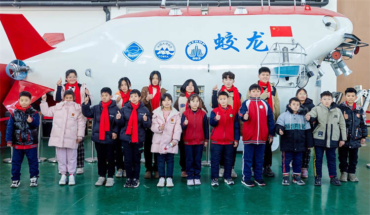 研學(xué)活動(dòng)第二站來到國家深?;毓芾碇行模谶@里孩子們見到了“蛟龍”號深海載人潛艇的1:1模型,聆聽工作人員講解深海自然及科考知識。在好奇的目光和陣陣驚嘆聲中,孩子們興奮地遨游在神秘又富饒的海底世界。