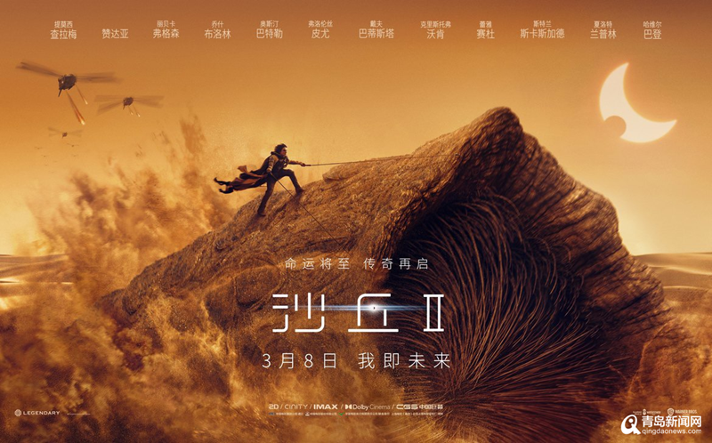 青島新聞網(wǎng)3月10日訊(記者 張力偉)根據(jù)弗蘭克·赫伯特著名科幻小說改編,由美國(guó)傳奇影業(yè)和美國(guó)華納兄弟影片公司攜手打造的好萊塢科幻巨制《沙丘2》正在青島萬達(dá)影城熱映中,頂級(jí)工業(yè)大片的沉浸震撼視聽,收獲觀眾好評(píng)無數(shù),年度大銀幕狂歡不容錯(cuò)過!