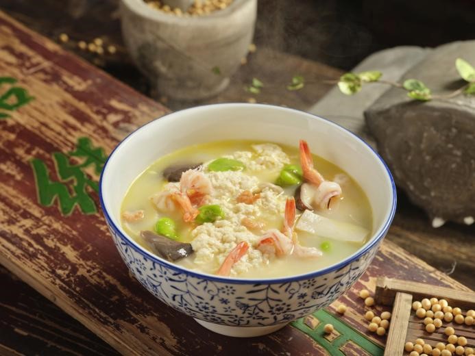 在南京橋林鎮(zhèn)的豆腐是一絕。每日晨起親手點(diǎn)的豆花不可不嘗。既不似豆腐腦的入口即化,也不是老豆腐的醇厚綿實(shí),恰到好處的口感讓人愛(ài)不釋口,再加入平菇、香菇、杏鮑菇、春蠶豆瓣和大蝦,真真是白、嫩、滑、鮮、香。
