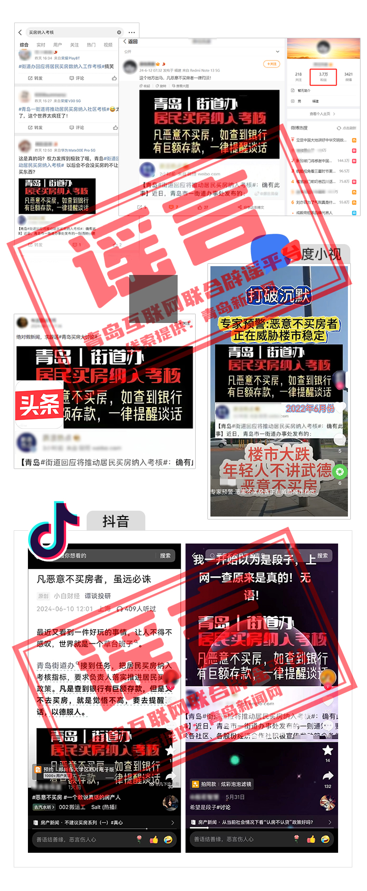 青島某街道辦稱“惡意不買房一律提醒談話”?假的!