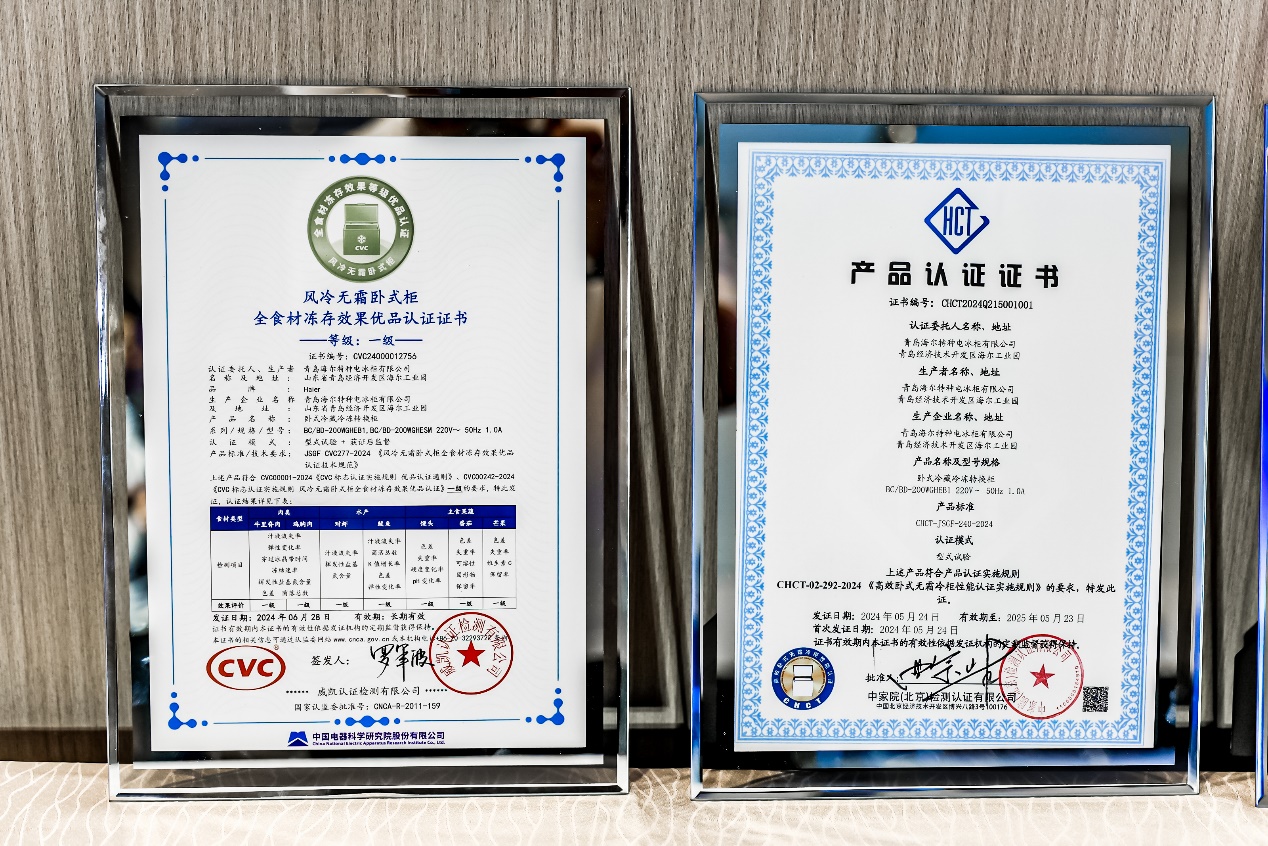 一直以來,中國家用電器研究院致力于通過研究、評測產(chǎn)品,把好產(chǎn)品傳遞給用戶,幫助用戶構(gòu)建美好的品質(zhì)生活。經(jīng)中國家用電器研究院檢測,海爾領(lǐng)鮮系列無霜臥式柜通過CHCT-02-292-2024《高效臥式無霜冷柜性能認(rèn)證實(shí)施規(guī)則》嚴(yán)苛要求,獲得了行業(yè)首個《高效臥式無霜冷柜性能認(rèn)證》。