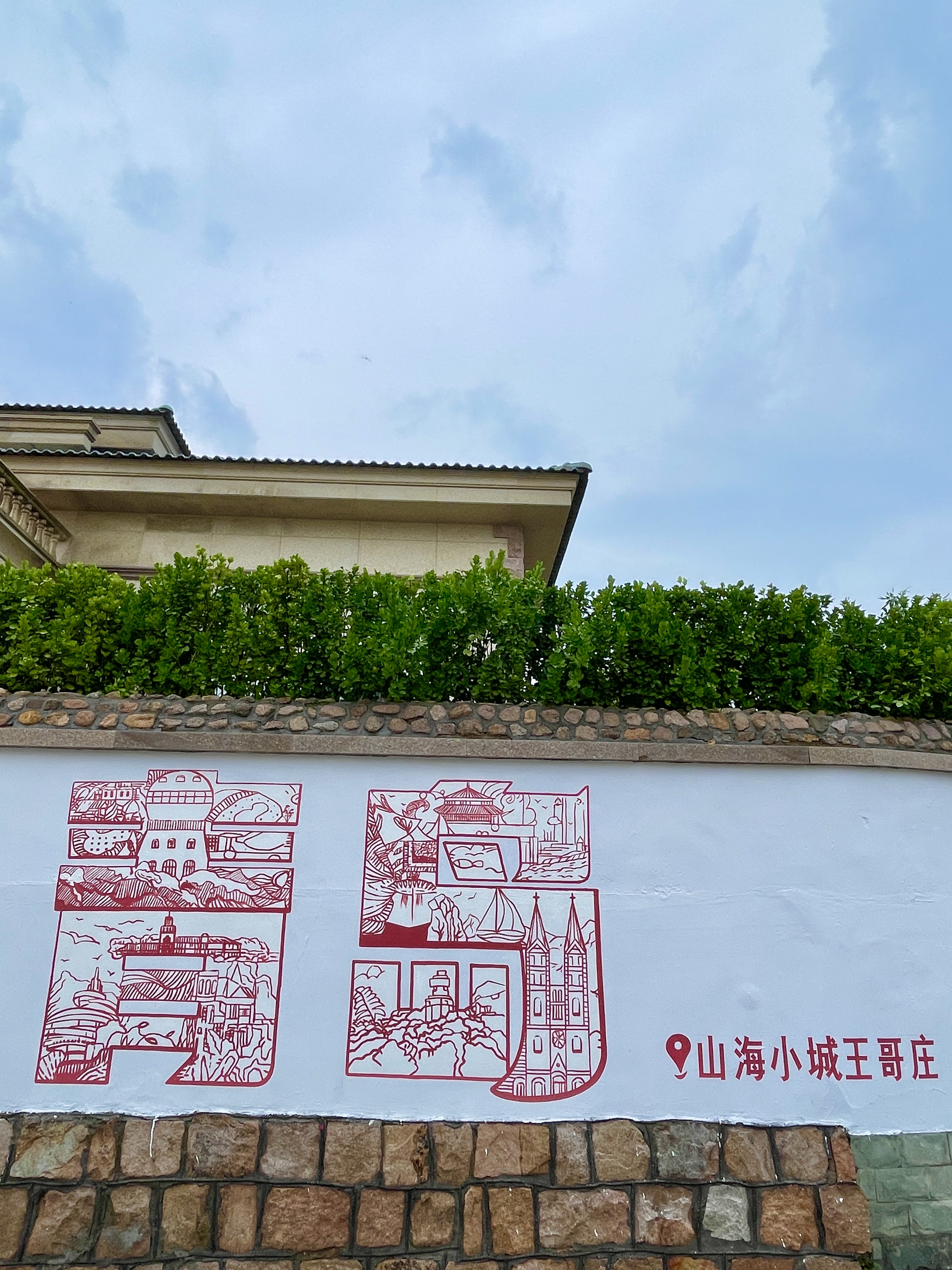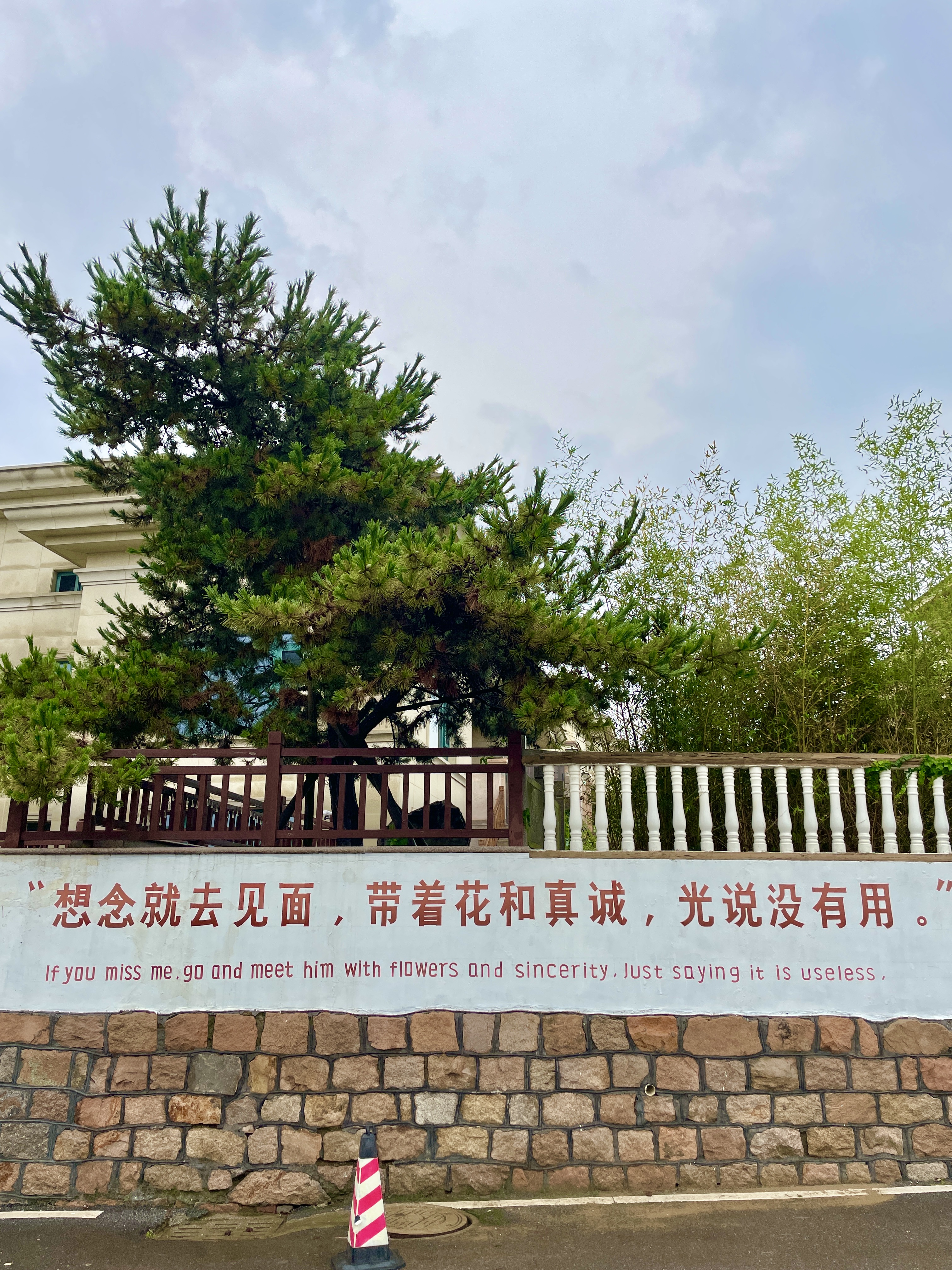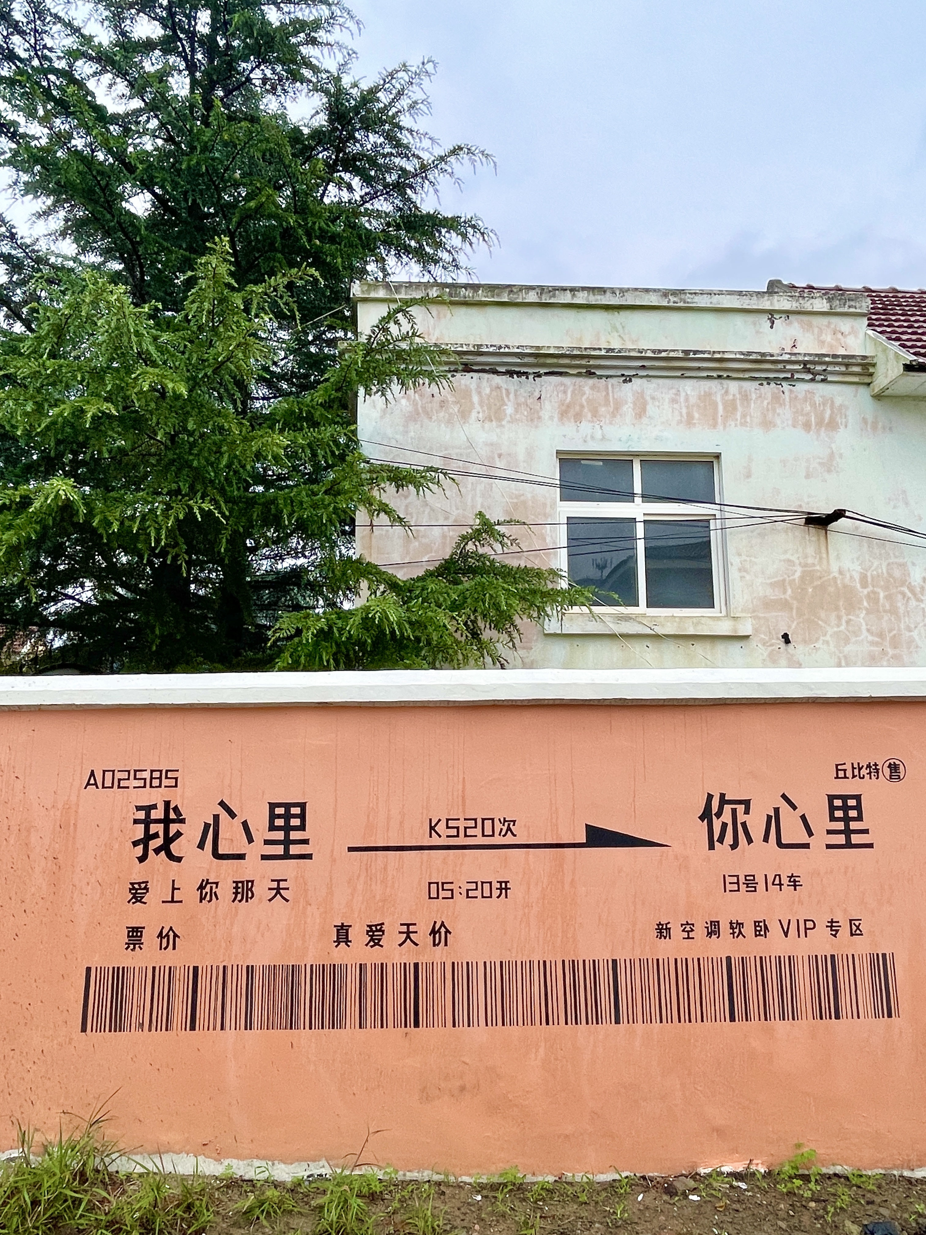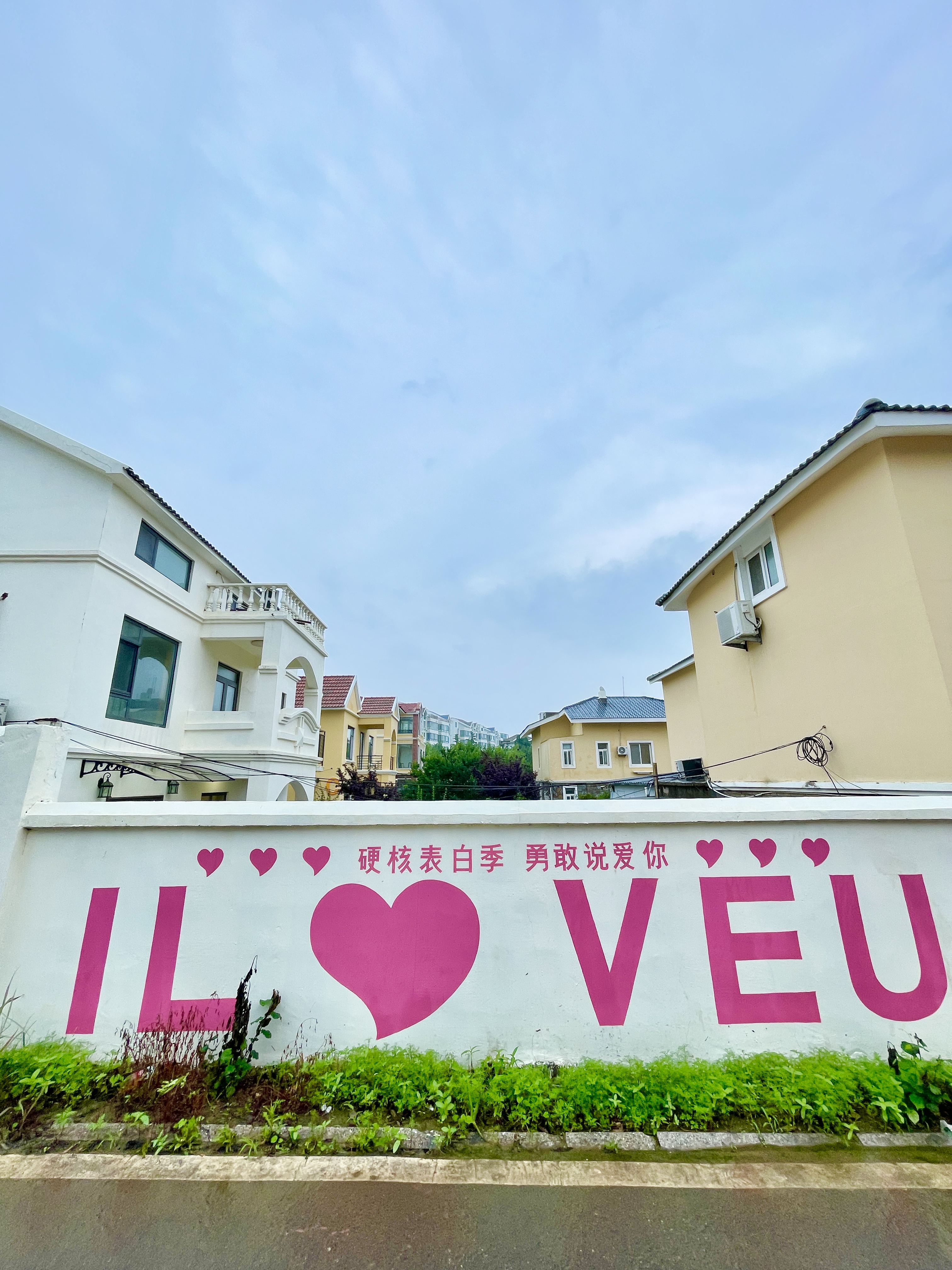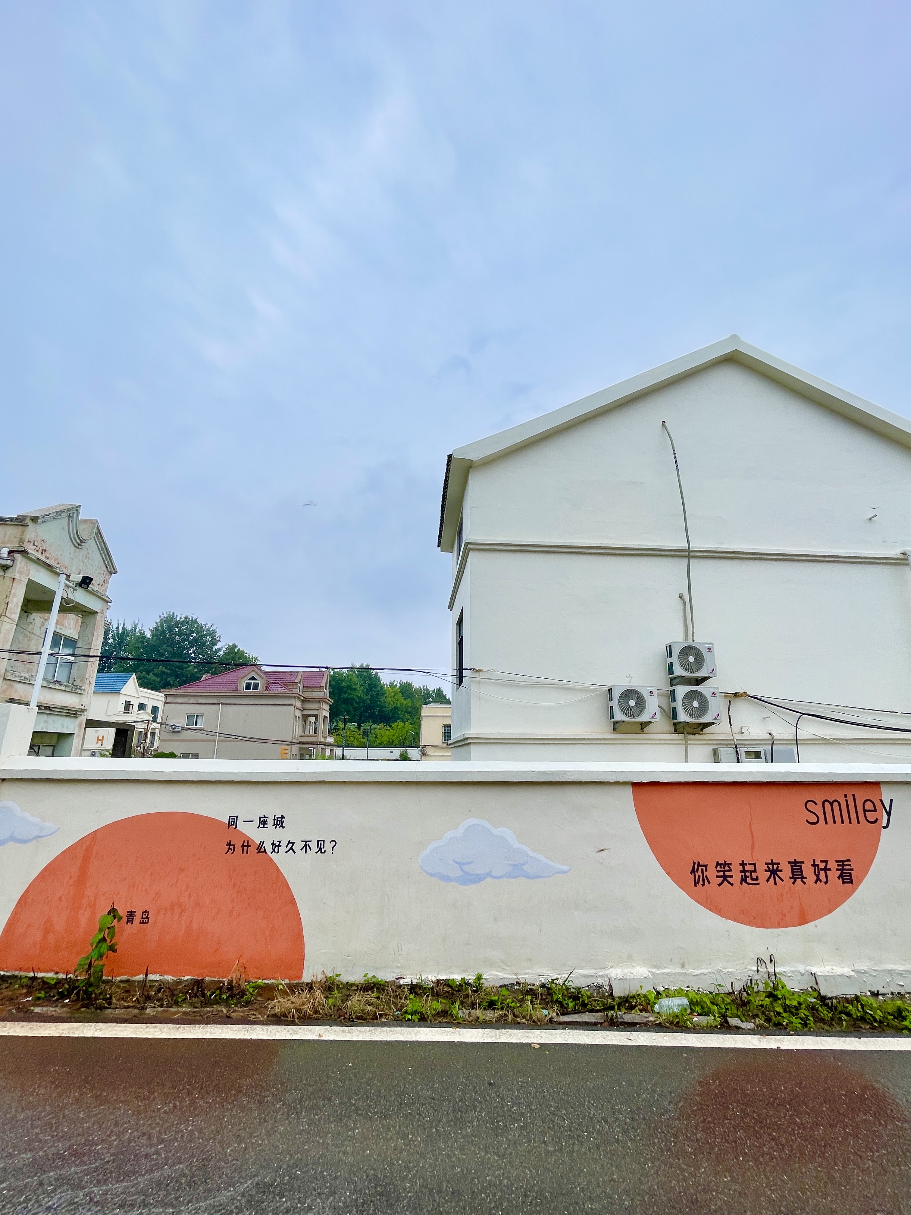 位置有點(diǎn)遠(yuǎn),在嶗山王哥莊,自駕可定位青島君瀾海居民宿,最后拐進(jìn)小道的時(shí)候就會(huì)看到涂鴉墻。溫馨提示:拍照時(shí)注意過(guò)往車(chē)輛。