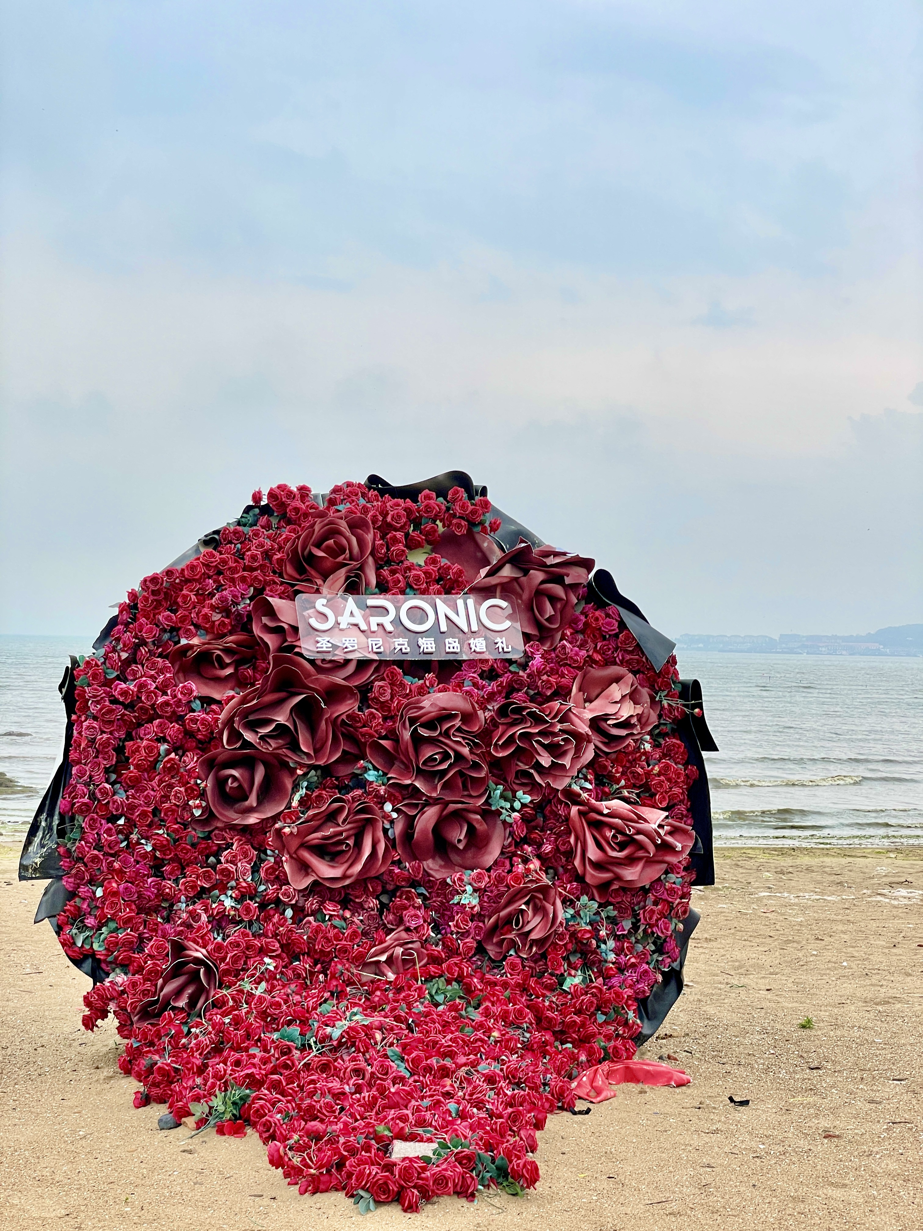坐標嶗山會場圣羅尼克莊園,一個臨海而建的超凡脫俗的咖啡新業(yè)態(tài)——海上云端書咖。面朝大海,出門就是細軟沙灘,沙灘上巨型玫瑰綻放著愛的宣言,雙人秋千輕輕搖曳著甜蜜時光。