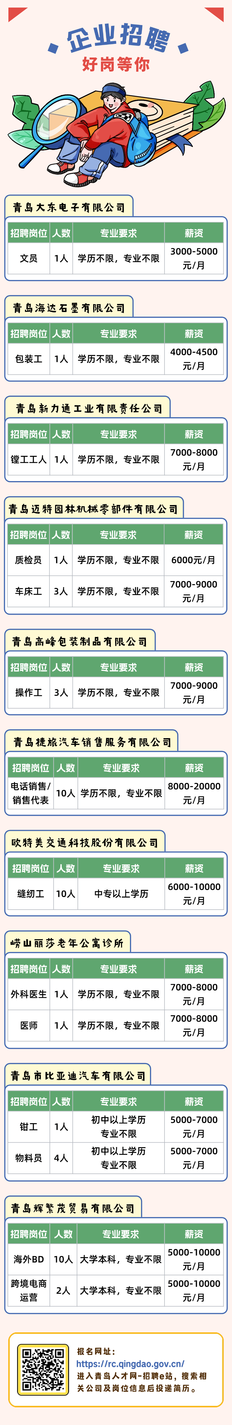 企業(yè)招聘?部分崗位不限專業(yè)不限學(xué)歷?
