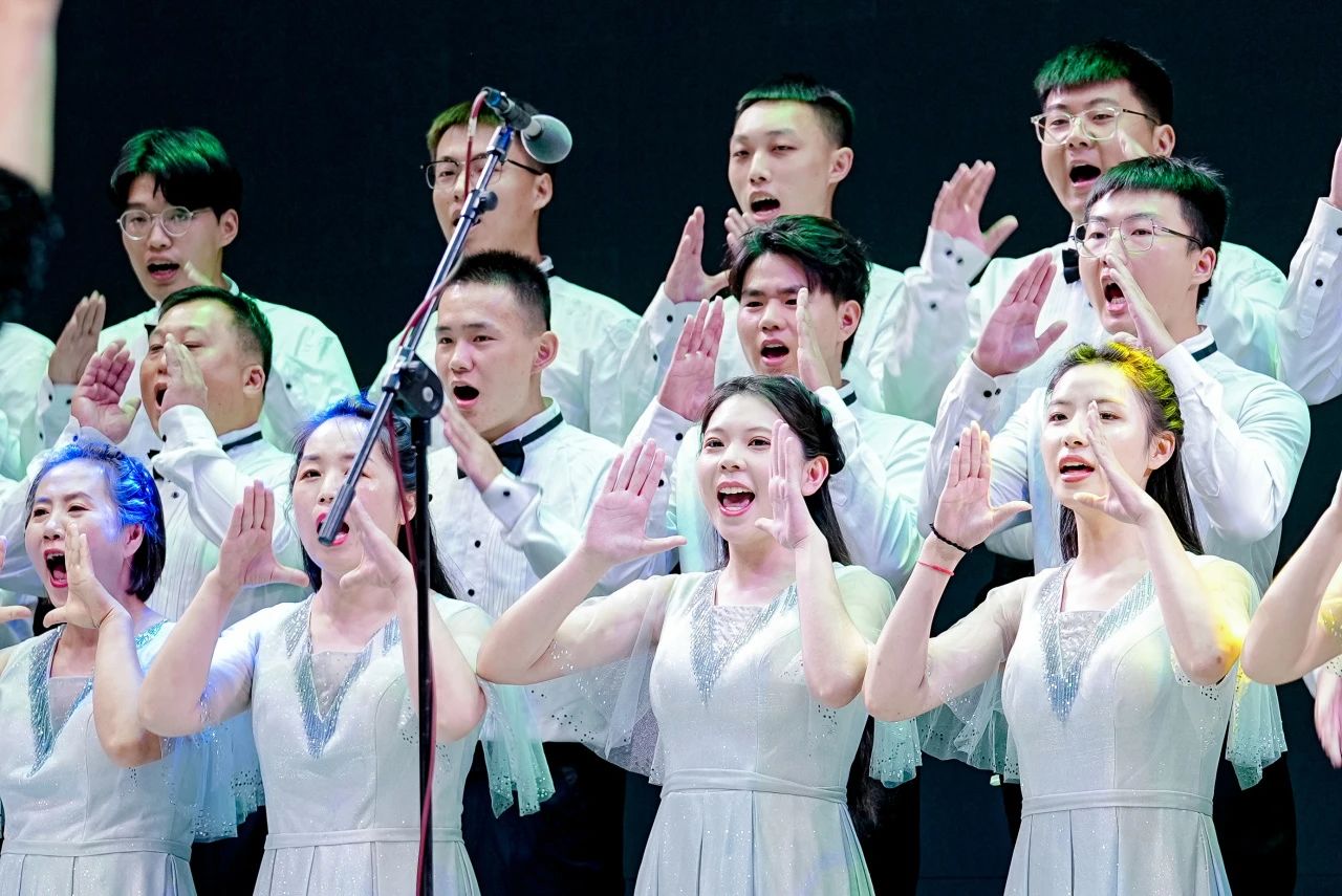 比賽在歌曲串燒《我愿+國(guó)家》中拉開(kāi)序幕,隨后,《不忘初心》《星辰大?!贰渡洗荷健贰对跔N爛陽(yáng)光下》《萬(wàn)疆》《光亮》等一首首耳熟能詳?shù)慕?jīng)典歌曲輪番上演,曲調(diào)時(shí)而高亢激昂,時(shí)而柔和婉轉(zhuǎn),各參賽隊(duì)伍將歌曲中蘊(yùn)含的情感演繹得淋漓盡致,唱出了對(duì)偉大祖國(guó)的深情和熱愛(ài),引得臺(tái)下觀(guān)眾掌聲不斷。