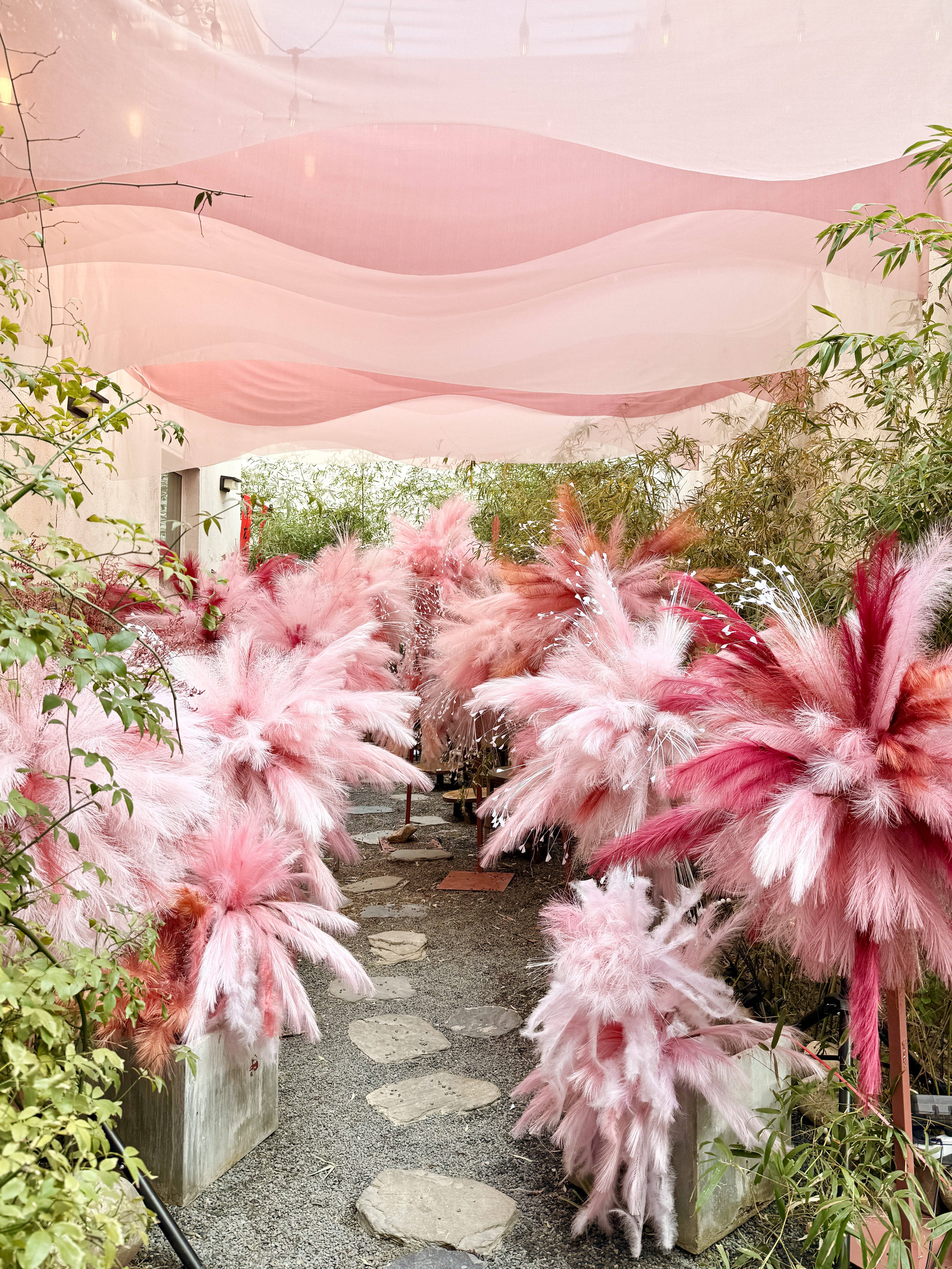 從室內(nèi)到庭院全都是粉色系的新春裝置,院落一隅還有春聯(lián),復古又清新,店里的喵主子們也盛裝出席,都預備備好,準備提前過年啦!