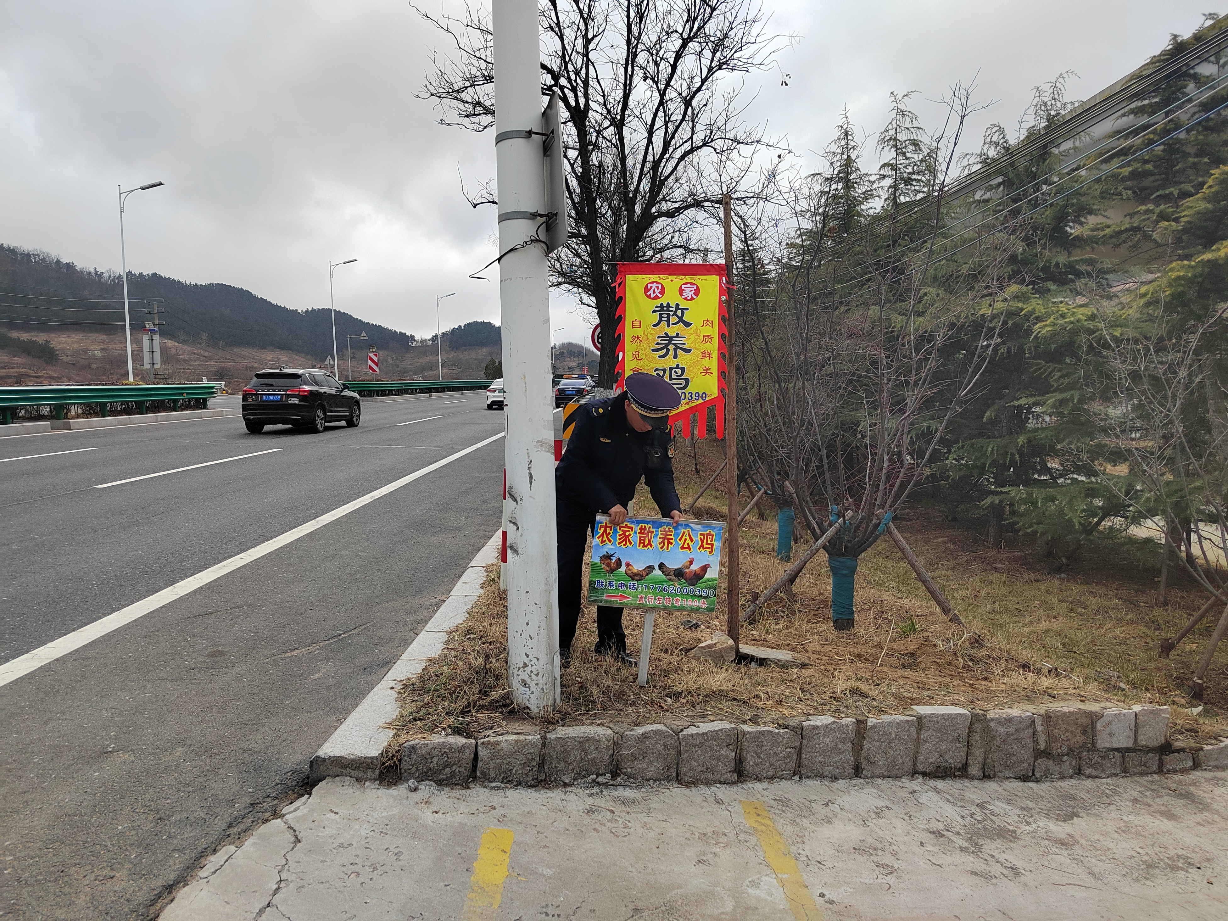 巡查中,執(zhí)法隊(duì)員發(fā)現(xiàn)濱海大道西側(cè)綠地內(nèi)有商戶直接將廣告牌插在路兩側(cè)的綠化帶內(nèi),嚴(yán)重影響綠化植物正常生長。執(zhí)法人員在和商戶溝通后,依法將廣告牌予以拆除。