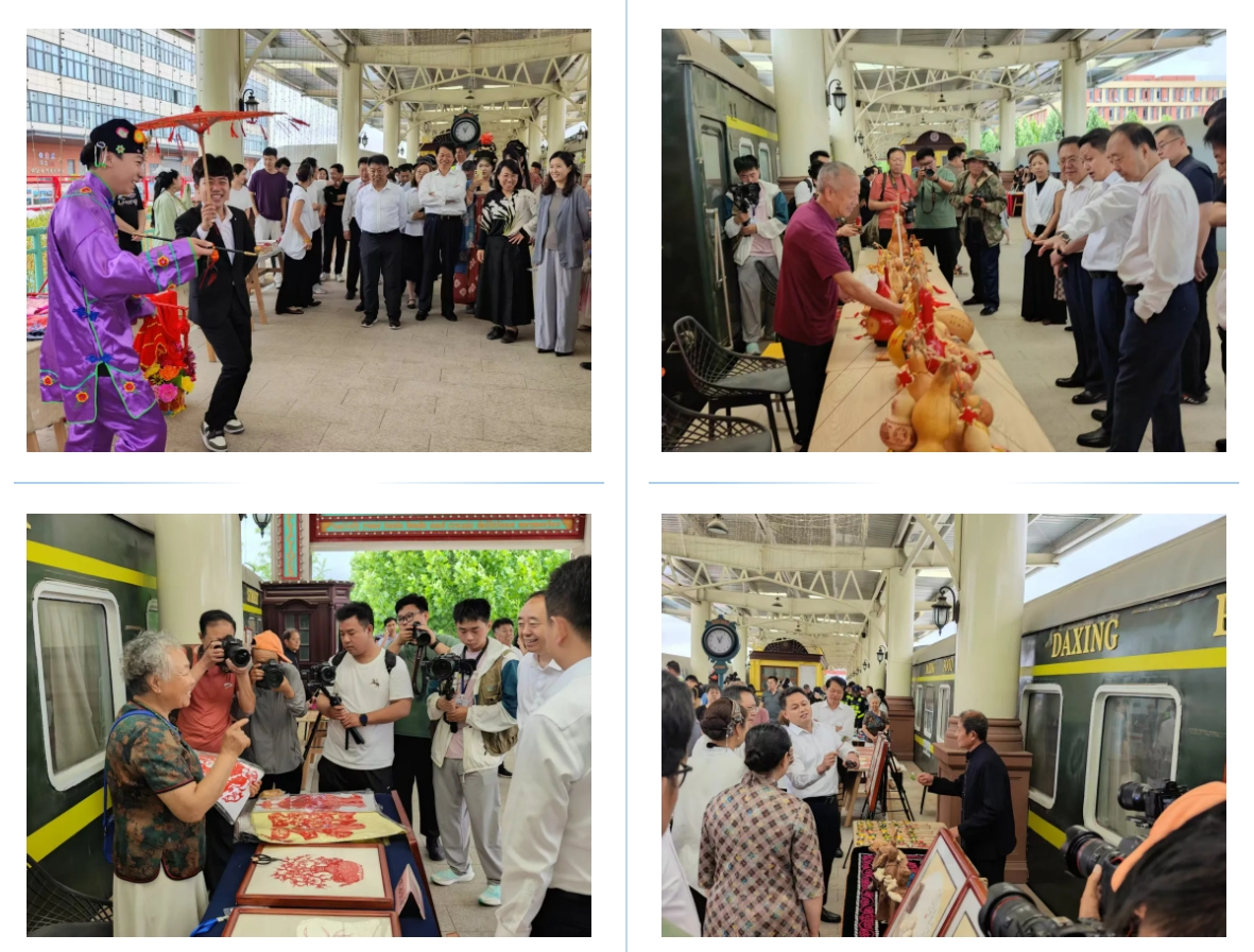 市集上,萊西秧歌、萊西木偶戲、葫蘆雕刻等多個(gè)非遺項(xiàng)目展位琳瑯滿目,非遺傳承人親自上陣,展示精湛技藝,講解非遺故事。觀眾們不僅可以在此欣賞到精美的非遺作品,還能親身體驗(yàn)非遺技藝,如親手制作剪紙、木刻等。