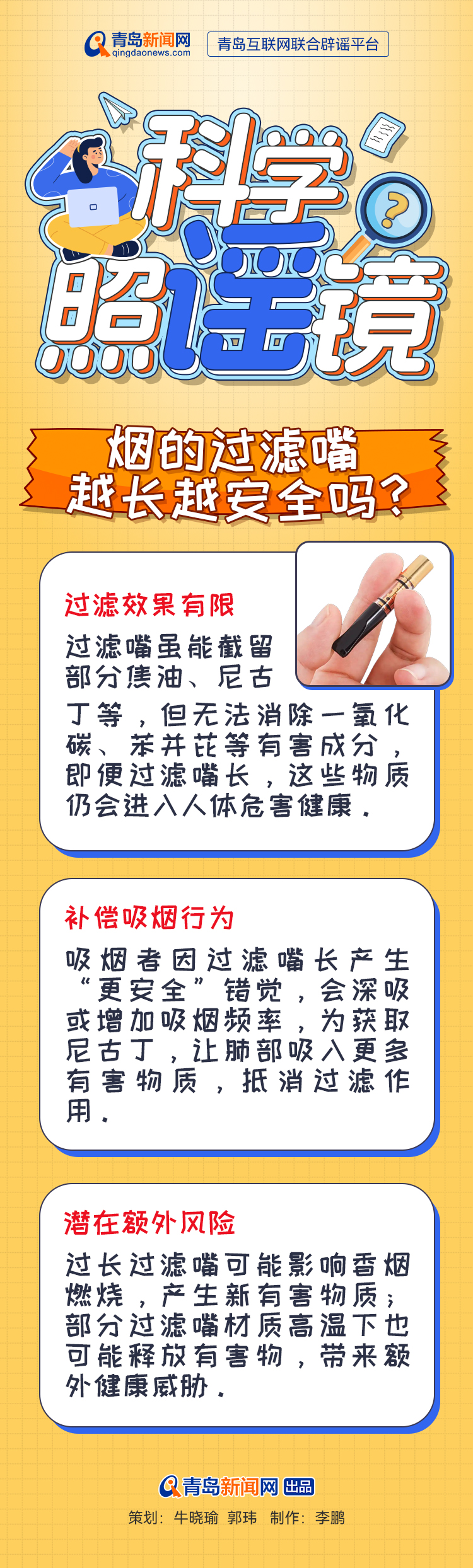 【科學(xué)照“謠”鏡】煙的過(guò)濾嘴越長(zhǎng)越安全嗎?