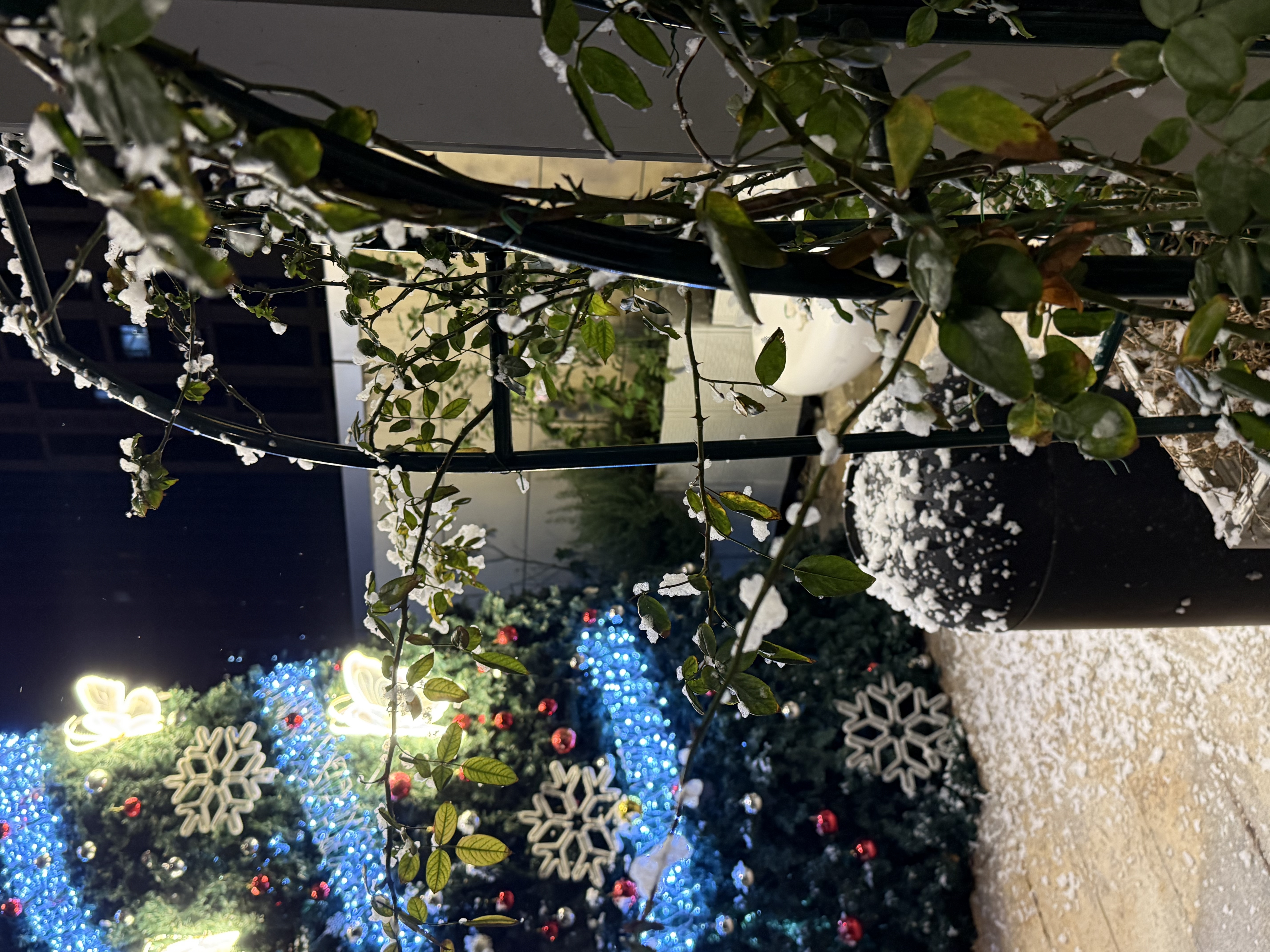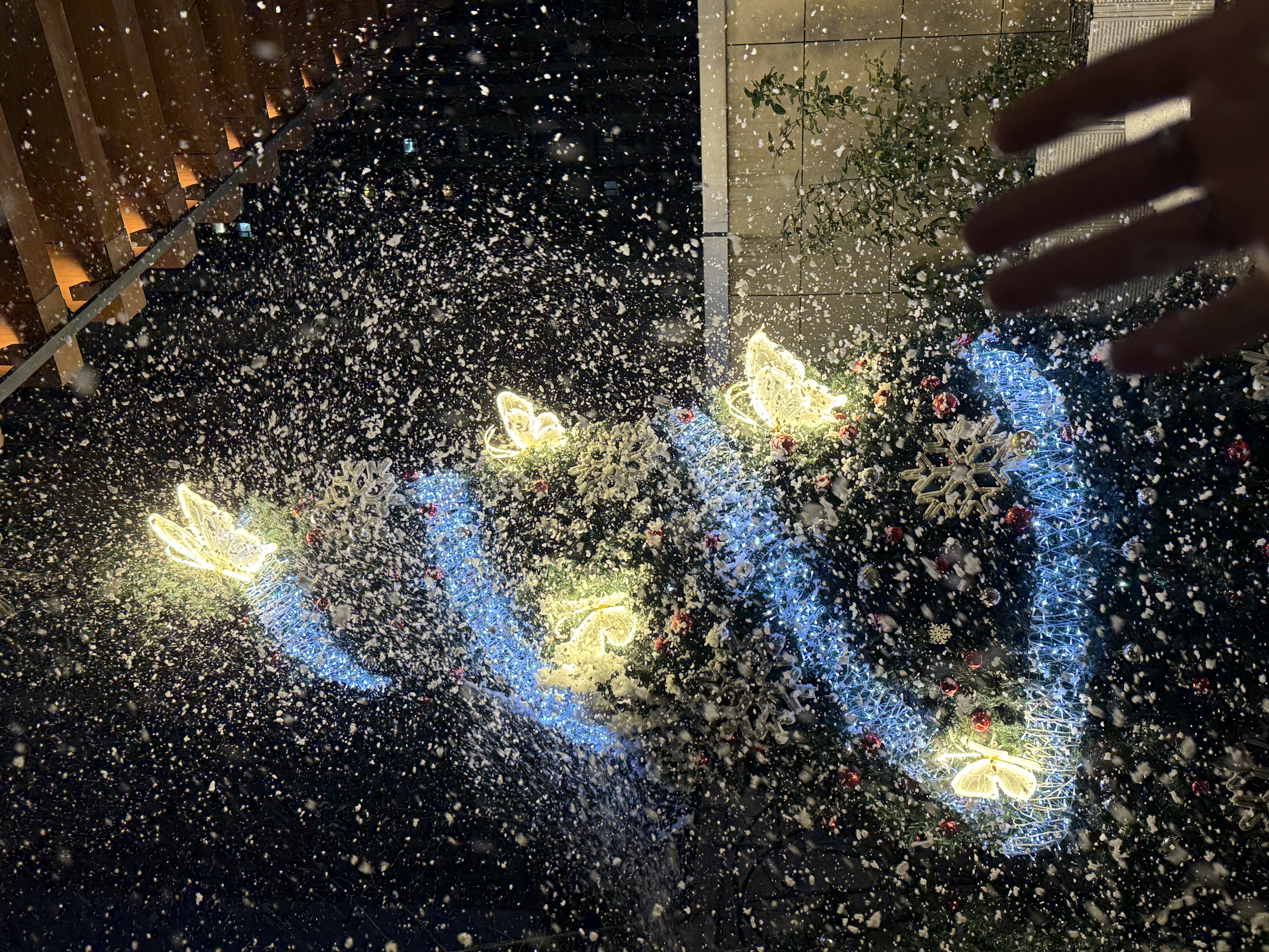 露臺(tái)區(qū)域已經(jīng)變身童話森林,巨型圣誕樹矗立其中,雪花掛飾與發(fā)光蝴蝶相互映襯,直接把冬日浪漫拉滿。白天,陽光灑下,靜謐治愈;夜晚,燈光亮起,微醺浪漫。在這里,你可以穿上美美的衣服,與圣誕樹合影留念,記錄下這美好的瞬間。