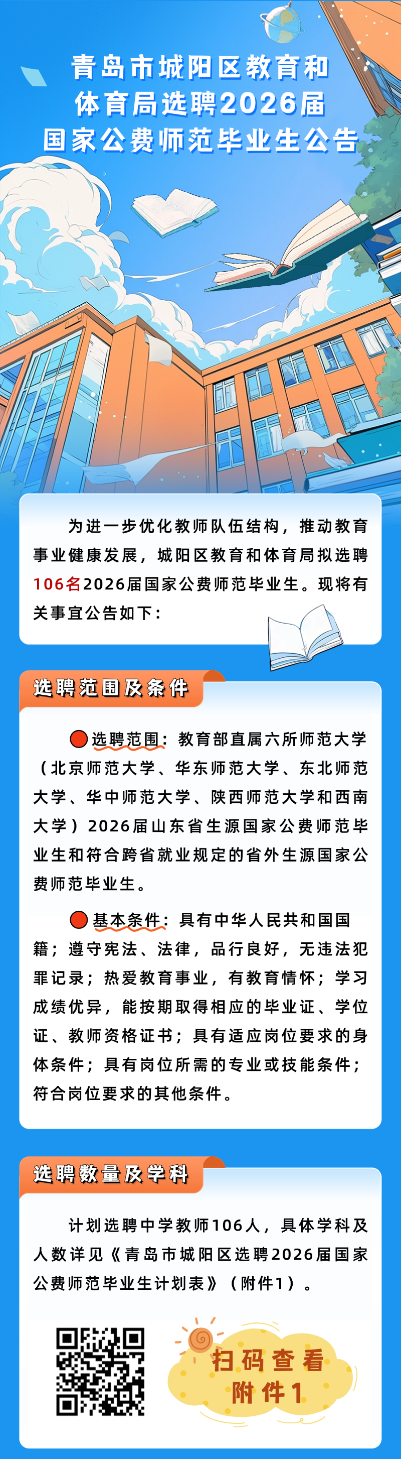 事業(yè)編??106人??城陽區(qū)教育和體育局選聘中學(xué)教師