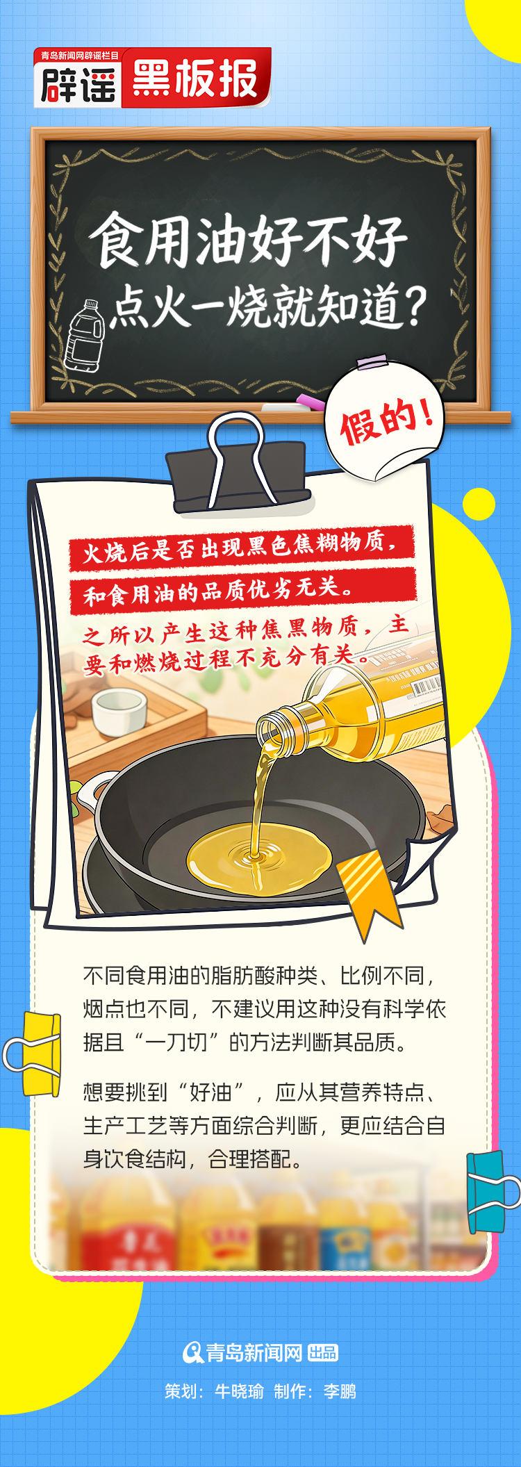 【辟謠黑板報】食用油好不好點火一燒就知道?