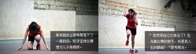 郭秀菊:當(dāng)時(shí)在現(xiàn)場那種氣氛和全場的掌聲,讓我覺得自己太幸福了!多少職業(yè)運(yùn)動(dòng)員跑了一輩子也沒能參加一屆世錦賽,我覺得自己太幸運(yùn)了!能站在鳥巢的跑道上,也是我運(yùn)動(dòng)生涯的巔峰,賽前我就對自己說,如果能趕上一個(gè)人,我覺得也是為國增光!