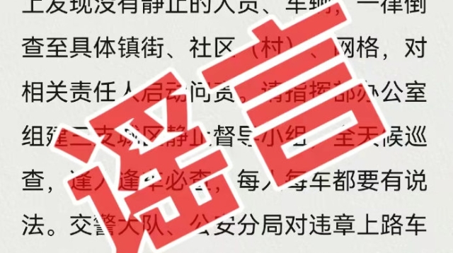 網(wǎng)傳"城區(qū)街面上非靜止的人員、車輛將被倒查"?信息不屬實(shí)