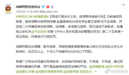 成都網(wǎng)警辟謠“某高校20多名學(xué)生患艾滋病”:已處罰造謠者