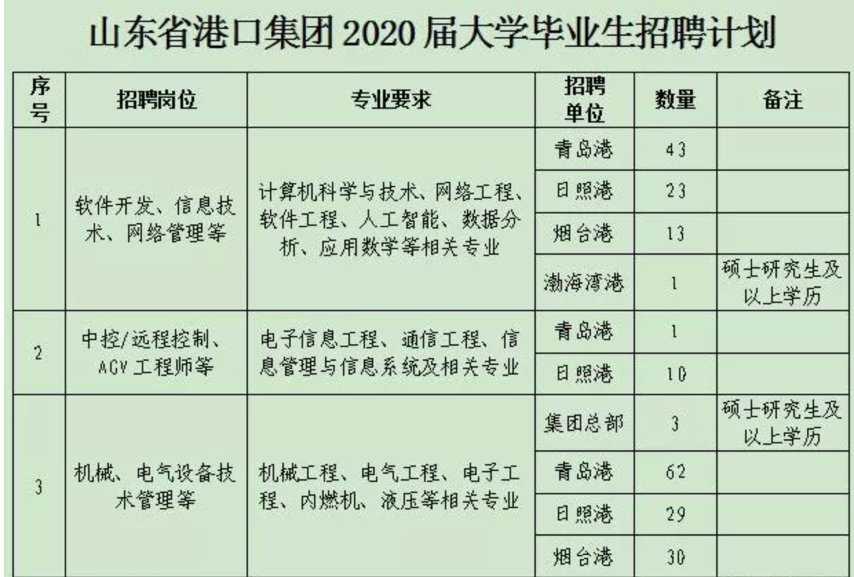 山東省港口集團(tuán)招聘2020年應(yīng)屆畢業(yè)生 573人!