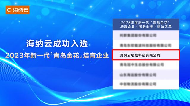 海納云入選2023年新一代“青島金花”培育企業(yè)
