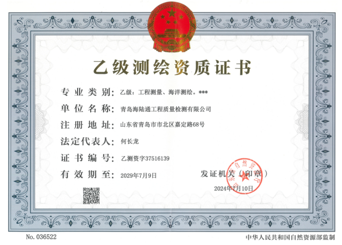 海陸通檢測公司獲得乙級測繪資質(zhì)證書