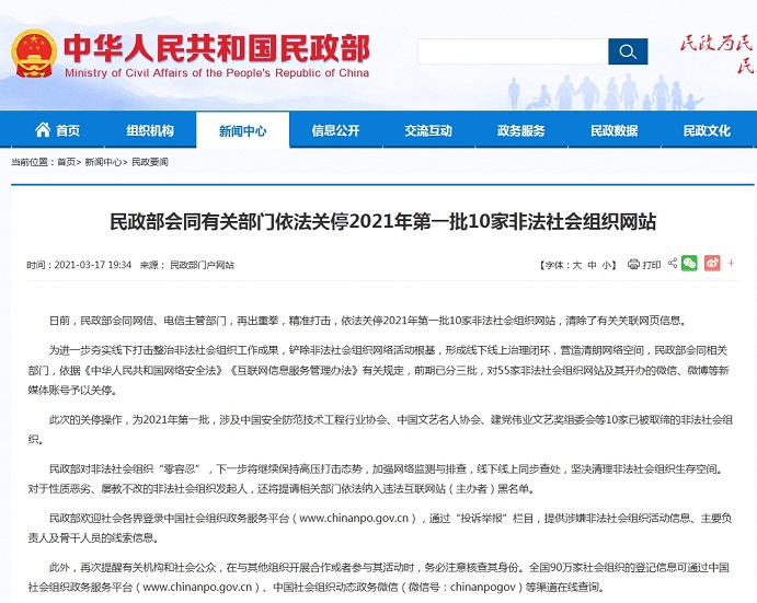 2021年第一批10家非法社會組織網(wǎng)站被關(guān)停