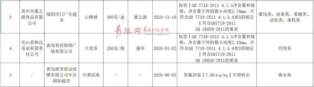 山東通報(bào)最新批次不合格食品 青島兩家公司上黑榜