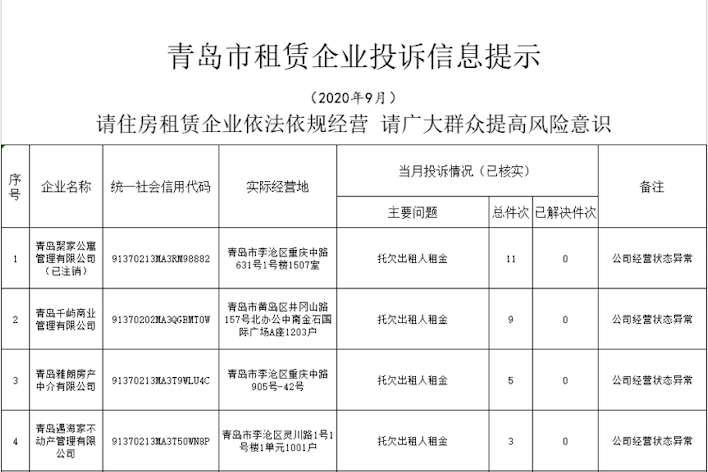 美麗屋、一站快租……青島17家住房租賃企業(yè)上“黑榜”