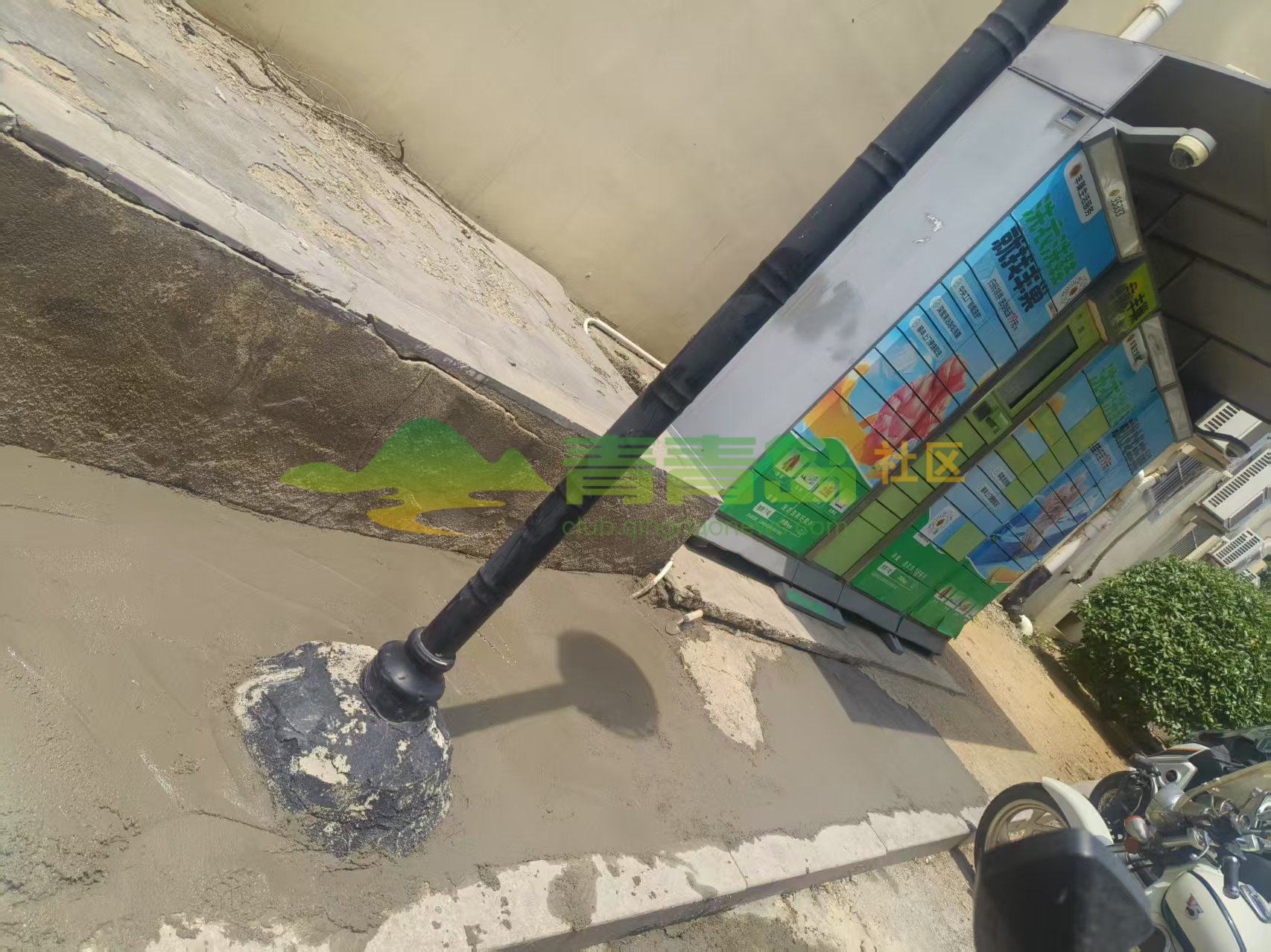 李滄區(qū)一豐巢箱旁邊的地面破損嚴重 官方:已修整完畢