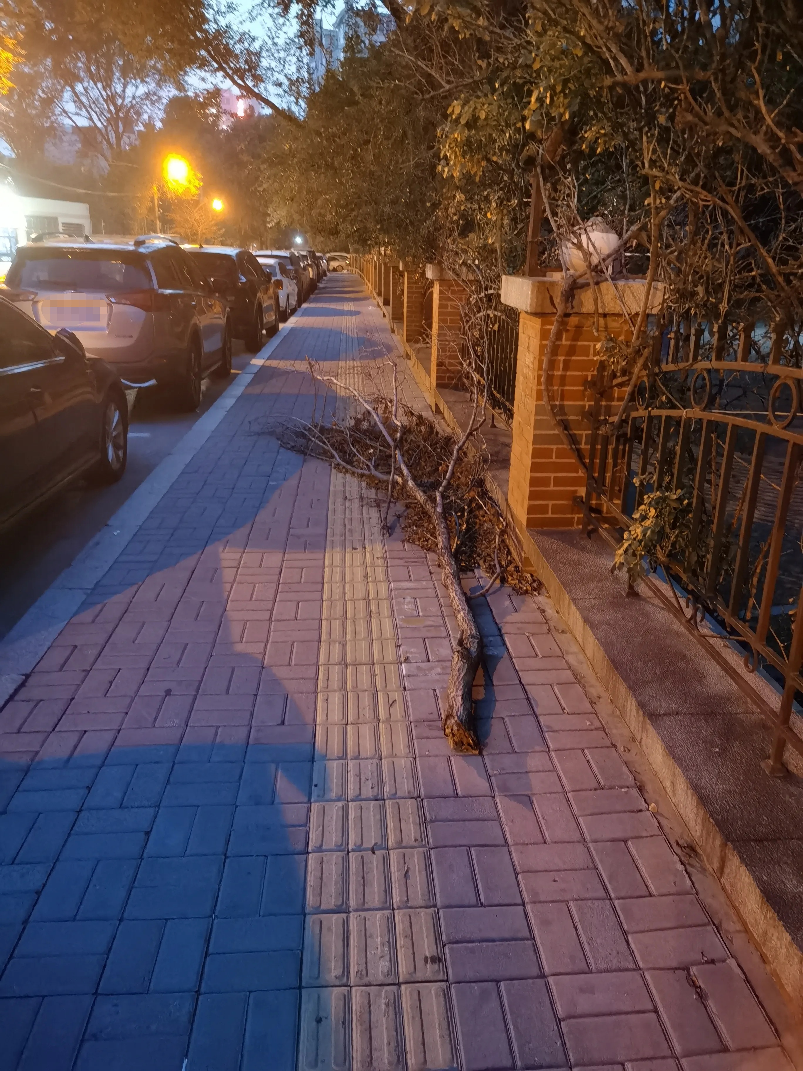 市北區(qū)某路段人行道路上放著樹杈子 街道辦:已清理