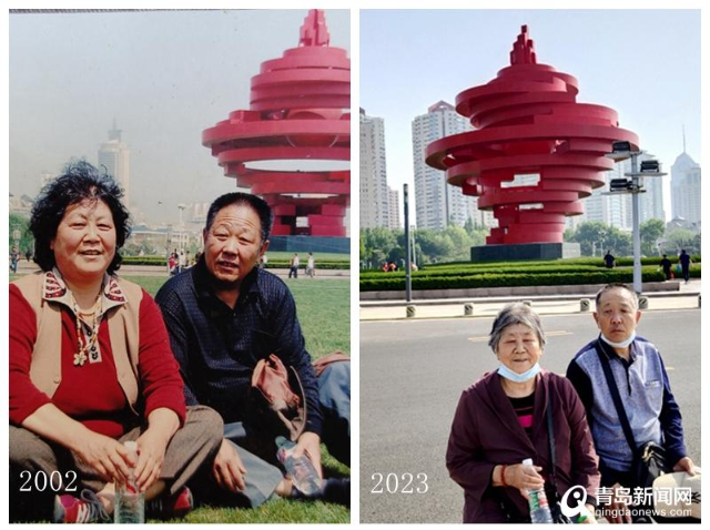 回憶滿滿!網(wǎng)友帶父母在五四廣場重拍20年前老照片