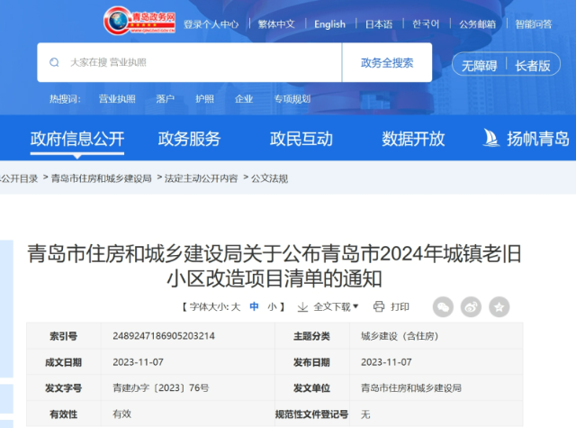 定了!青島2024年城鎮(zhèn)老舊小區(qū)改造名單公布