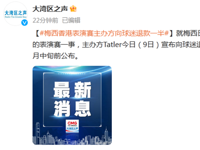 梅西香港表演賽退款一半!特區(qū)政府回應(yīng)
