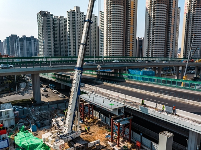 “提速換擋”山東路-鞍山路東北象限連接匝道及地下停車場完成首跨鋼箱梁架設