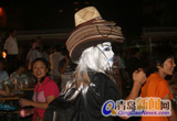 人體藝術(shù)招攬人氣 攤主雇人“演”雕塑