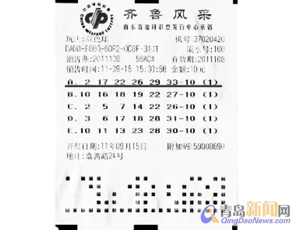三期“雙色球”島城拿兩金獎(jiǎng)