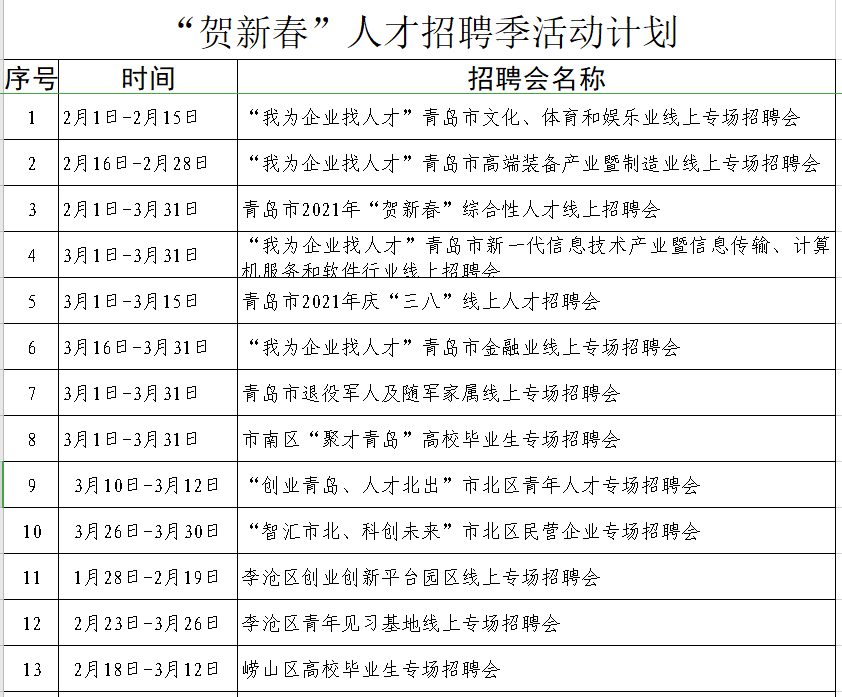 2021“賀新春”人才招聘季啟動 24場招聘會等你來