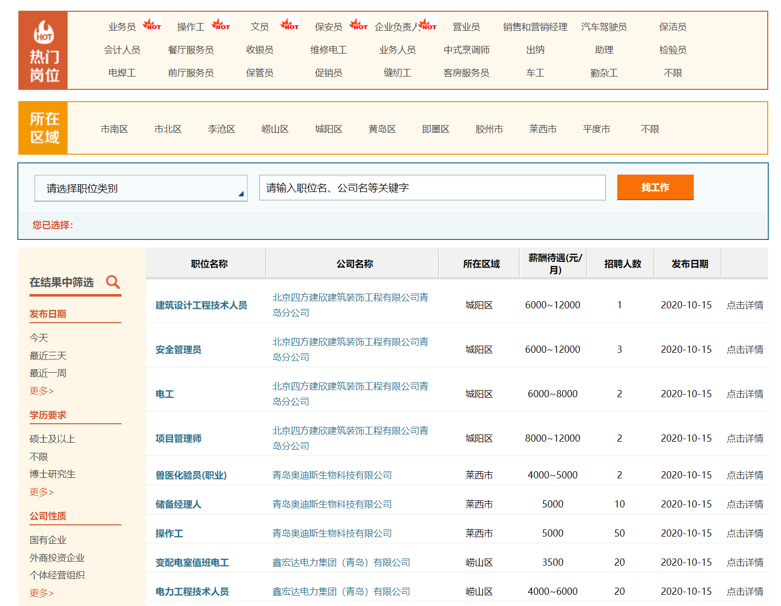 青島市精選招聘崗位推薦