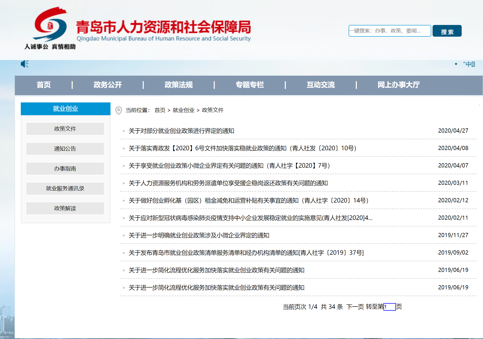 青島市人力資源和社會(huì)保障局-政策文件